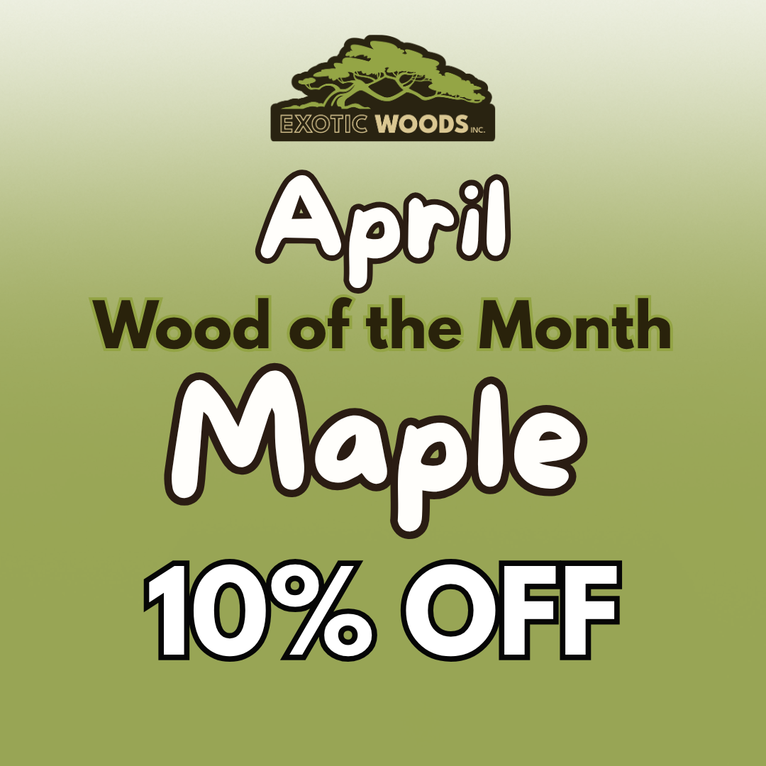 Enjoy 10% OFF all Maple, including rough lumber, dressed lumber, live edge, instrument woods, plywood, edge tape, small project woods and more—save all month long.